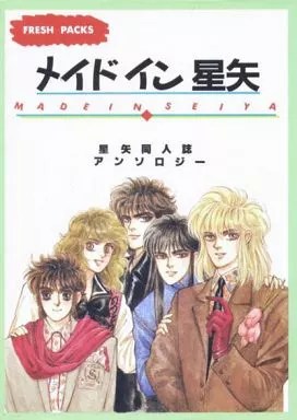 Seiji Biblos printed the first issue of FRESH PACKS in April 1988.2 Branded as a parody anthology, the first issue contained fanfiction doujinshi based on the popular bishounen anime Saint Seiya, titled 「メイドイン星矢」 (in English, “Made in Seiya” ).