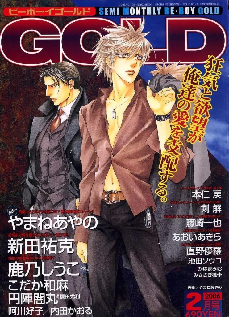 BE×BOY GOLD premiered in March 1995 as a special issue of Novel b-BOY, then switched to special issues of MEGU with the Winter 1996 issue. BE×BOY GOLD began bimonthly publication as an independent anthology with the February 1997 issue.