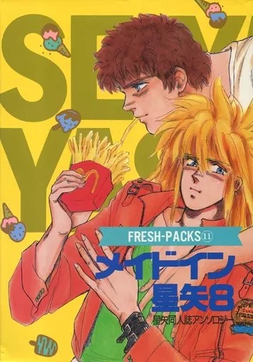 FRESH PACKS was first published in April 1988, publishing a total of 122 issues before ending in early 1994. The series of anthologies was branded as a parody magazine, publishing doujinshi based on various anime series, and including some original works throughout.