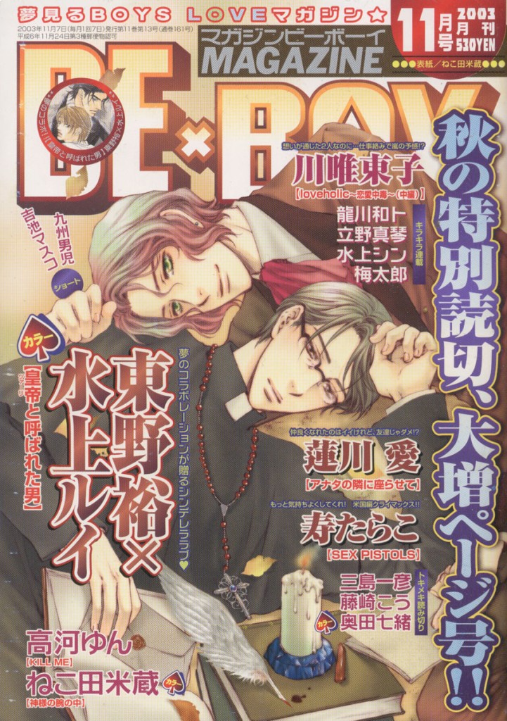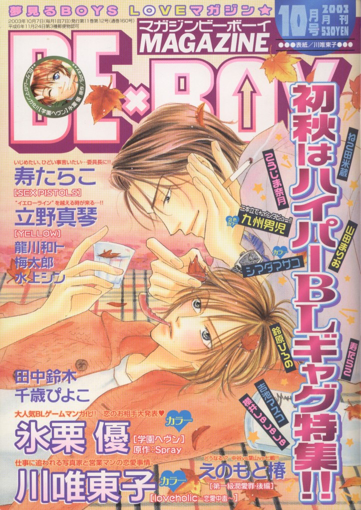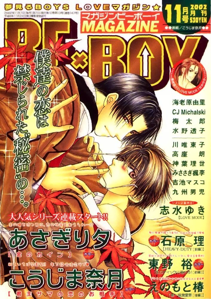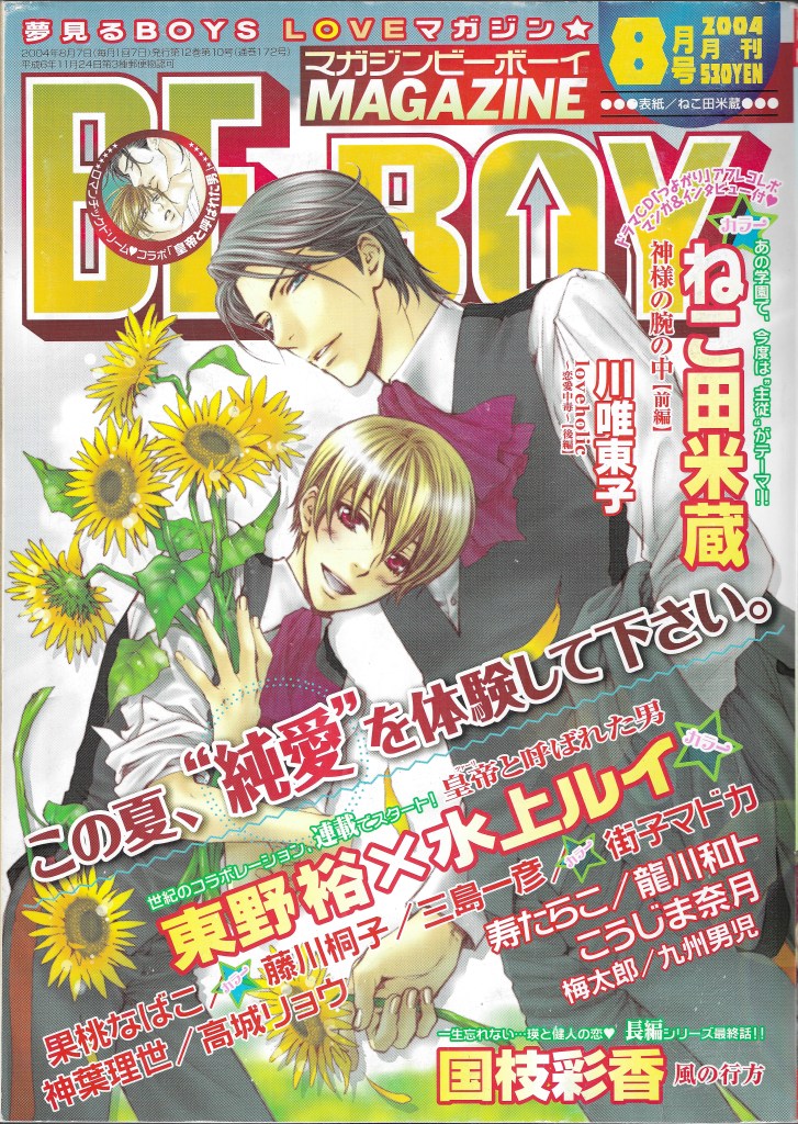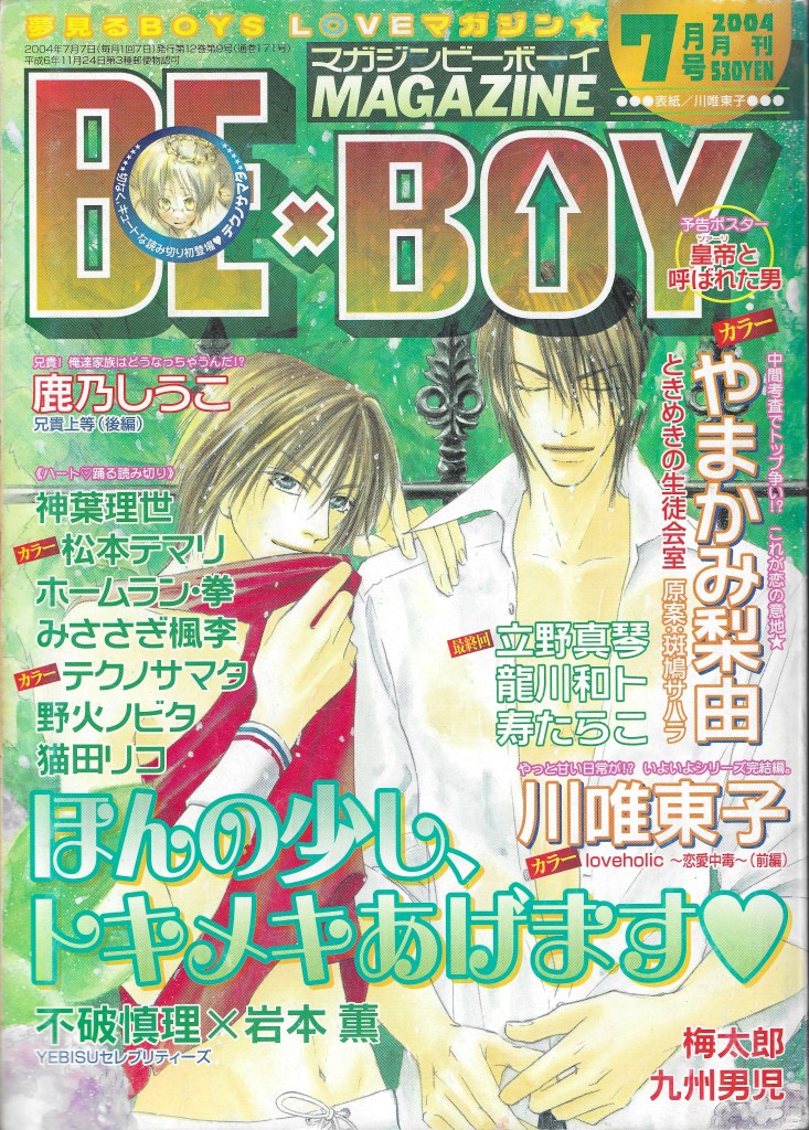 Magazine BE×BOY was first published as a special issue of Patsy in 1993 before becoming a separate publication that December. Novel b-BOY was published as special issues of Magazine BE×BOY in 1994, for issues 4 – 6, before branching into a separate publication. Novel BEaST was also published as special issues of Magazine BE×BOY from 1997 – 1999, before branching into a separate publication.