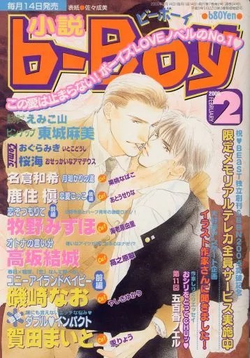Novel b-BOY was first published as specials in December 1992, for three issues before being published as special issues of Magazine BE×BOY for issues 4 – 6. Novel b-BOY became a separate publication with the October 1994 issue. ZERO was published as special issues of Novel b-BOY after Patsy ended publication, until the Autumn 1999 issue. BE×BOY GOLD began publication as special issues of Novel b-BOY in 1995, until moving to MEGU for 1996.