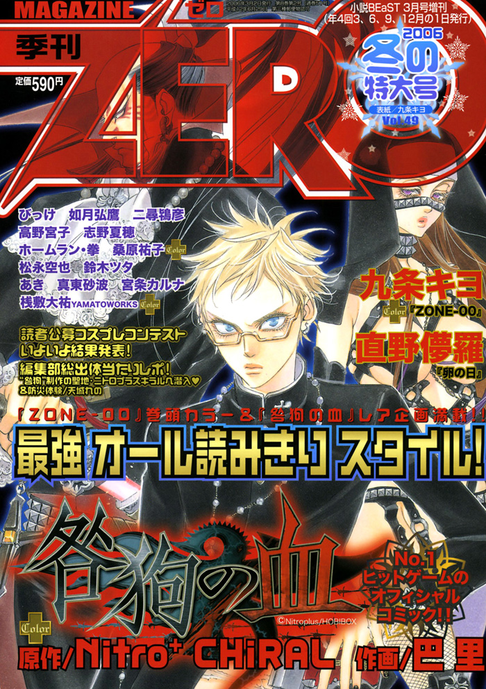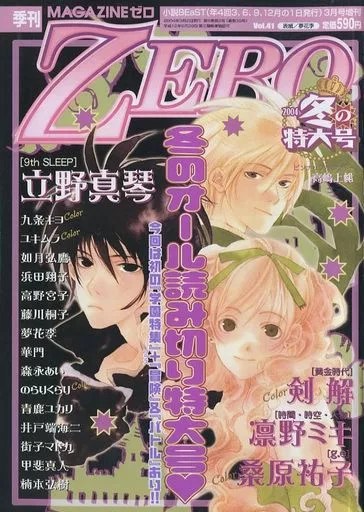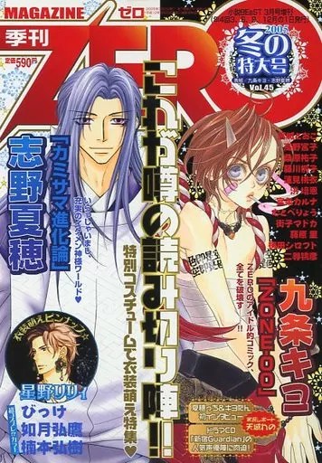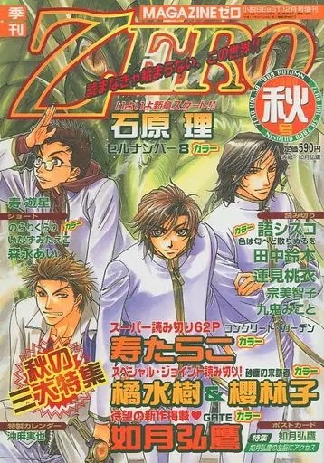 ZERO (later called Magazine ZERO) was first published in 1994, as a special issue of Patsy. While still featuring some BL manga, its primary focus was the science fiction and fantasy genres. ZERO was published quarterly (except for the issues from November 1995 to December 1997, during which it changed to a bimonthly publication). After Patsy ceased publication, ZERO was published as special issues of Novel b-BOY until the Autumn 1999 issue, when it joined the issuing order of Novel BEaST.