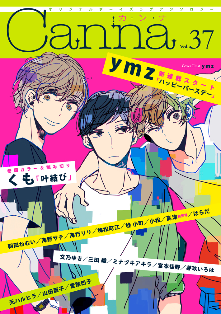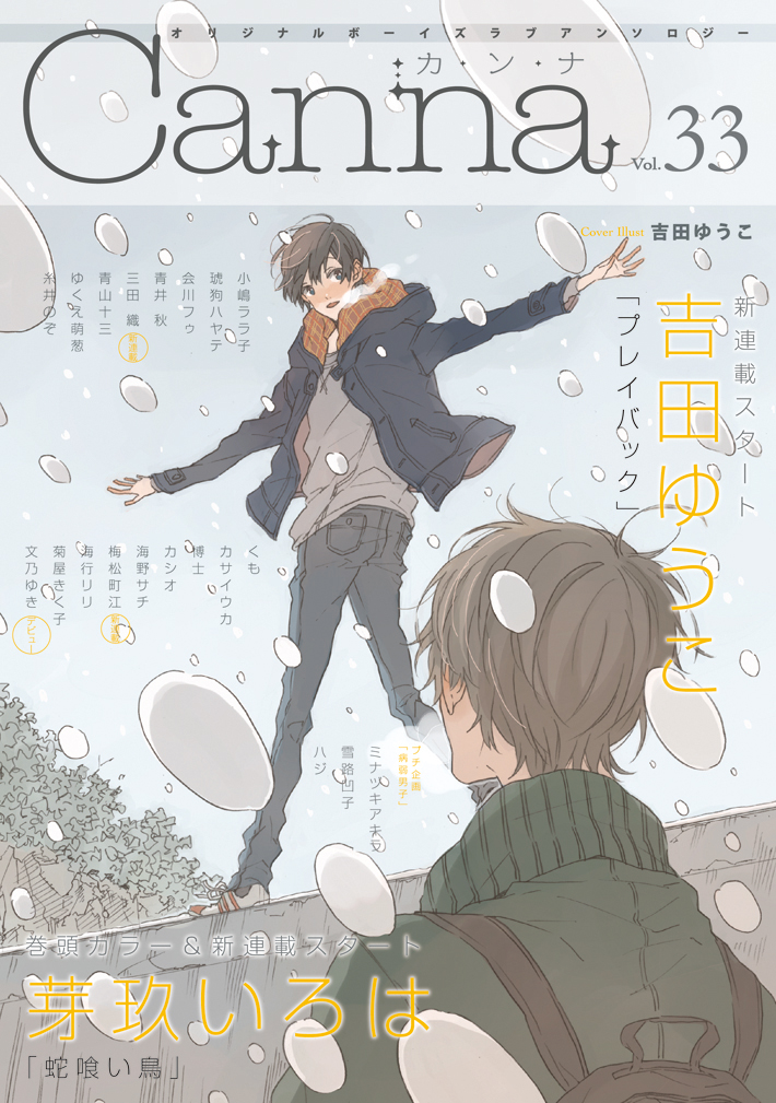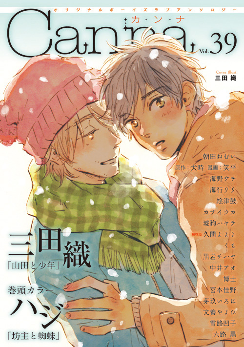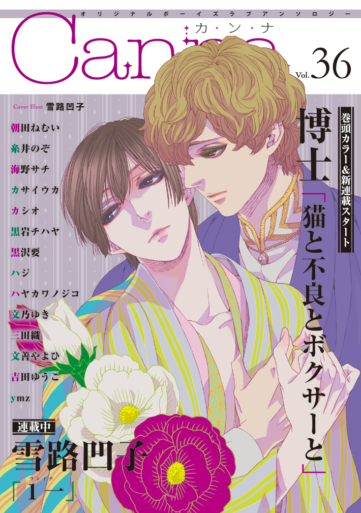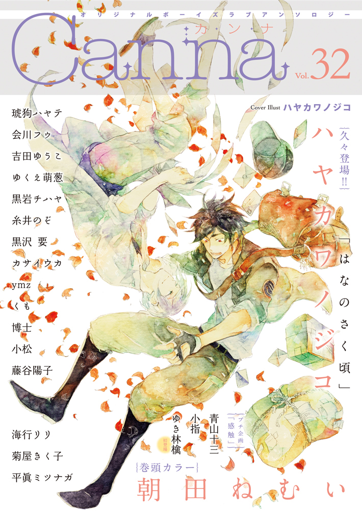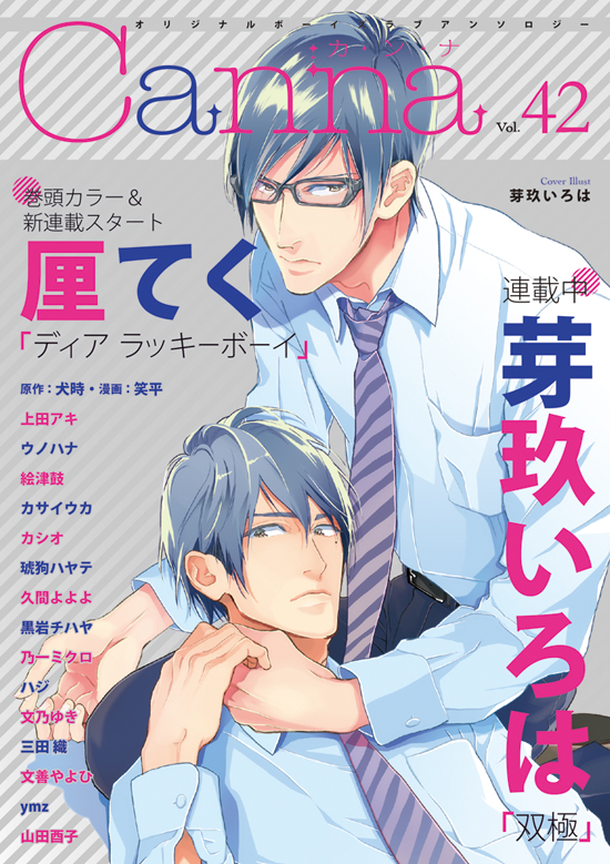 Canna is a boys’ love anthology published by Printemps Shuppan (an imprint of France Shoin), first published in 2010. Canna was published monthly through 2011, after which it changed to a bimonthly publication.