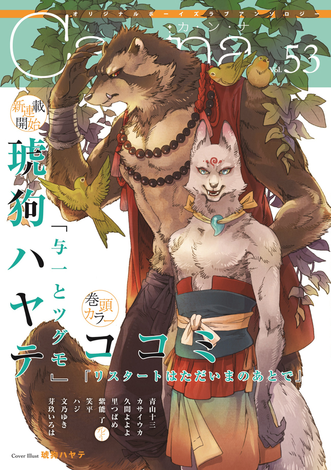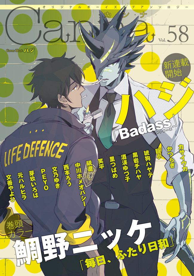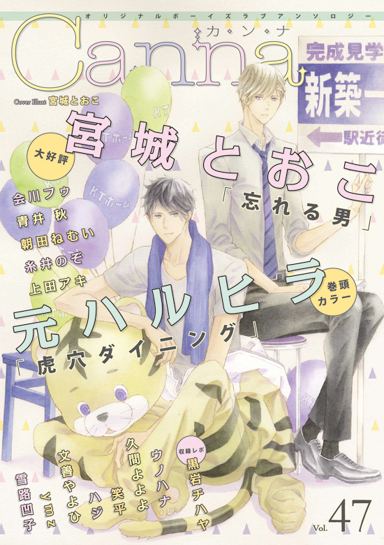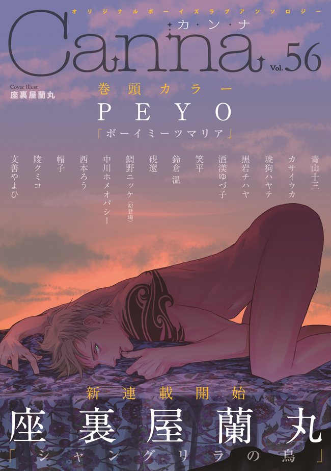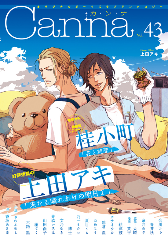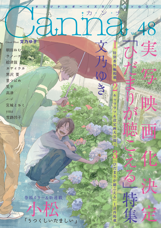 Canna is a boys’ love anthology published by Printemps Shuppan (an imprint of France Shoin), first published in 2010. Canna was published monthly through 2011, after which it changed to a bimonthly publication.