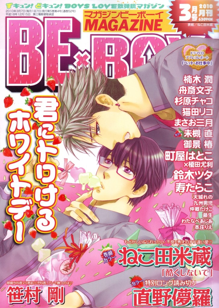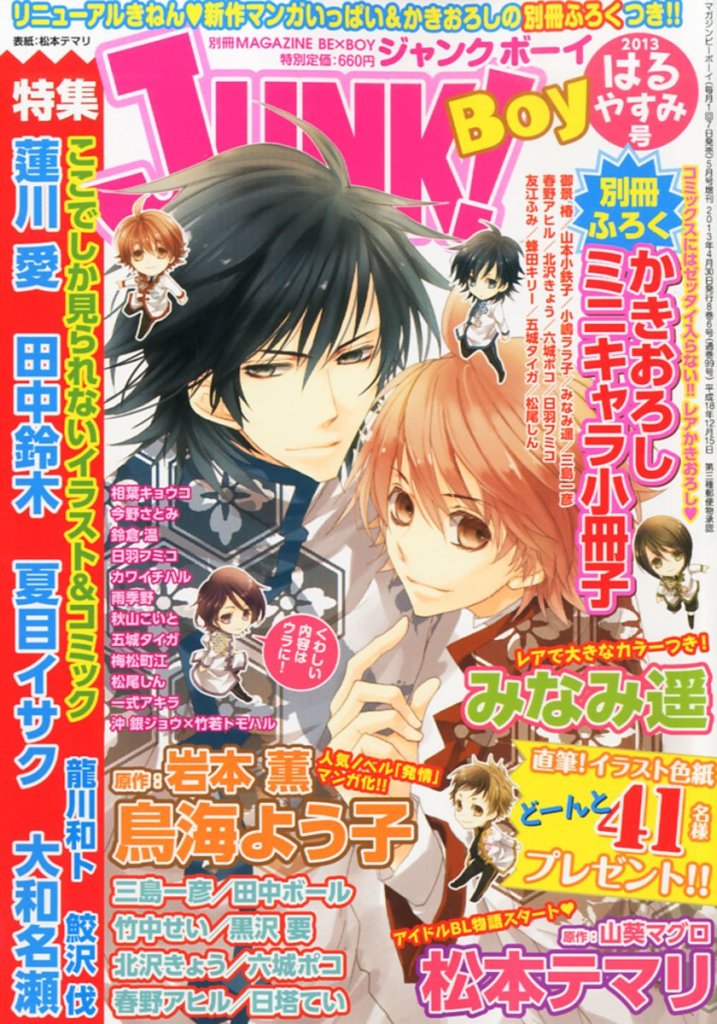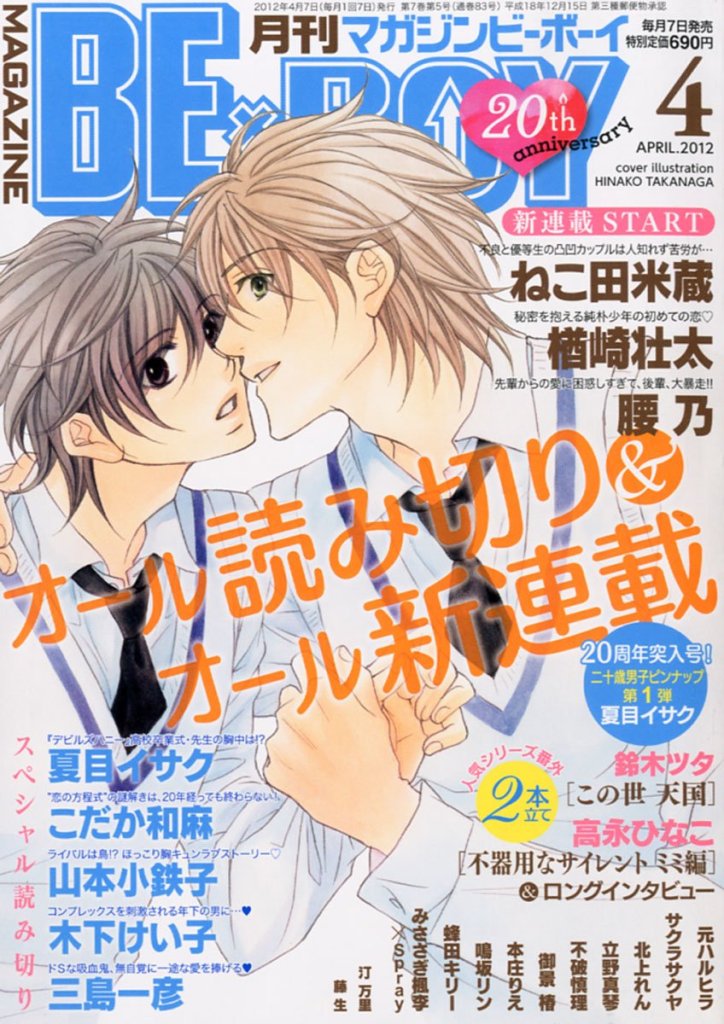 Magazine BE×BOY was first published by Seiji Biblos (Biblos) from 1993 – 2006. After the bankruptcy of Biblos, Libre was created in order to continue their publications. The first Libre issue of Magazine BE×BOY was published in June 2006.