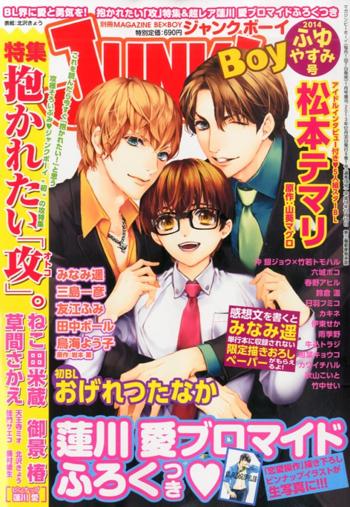 Magazine BE×BOY was first published by Seiji Biblos (Biblos) from 1993 – 2006. After the bankruptcy of Biblos, Libre was created in order to continue their publications. The first Libre issue of Magazine BE×BOY was published in June 2006.