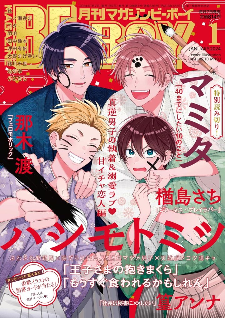 Magazine BE×BOY was first published by Seiji Biblos (Biblos) from 1993 – 2006. After the bankruptcy of Biblos, Libre was created in order to continue their publications. The first Libre issue of Magazine BE×BOY was published in June 2006.