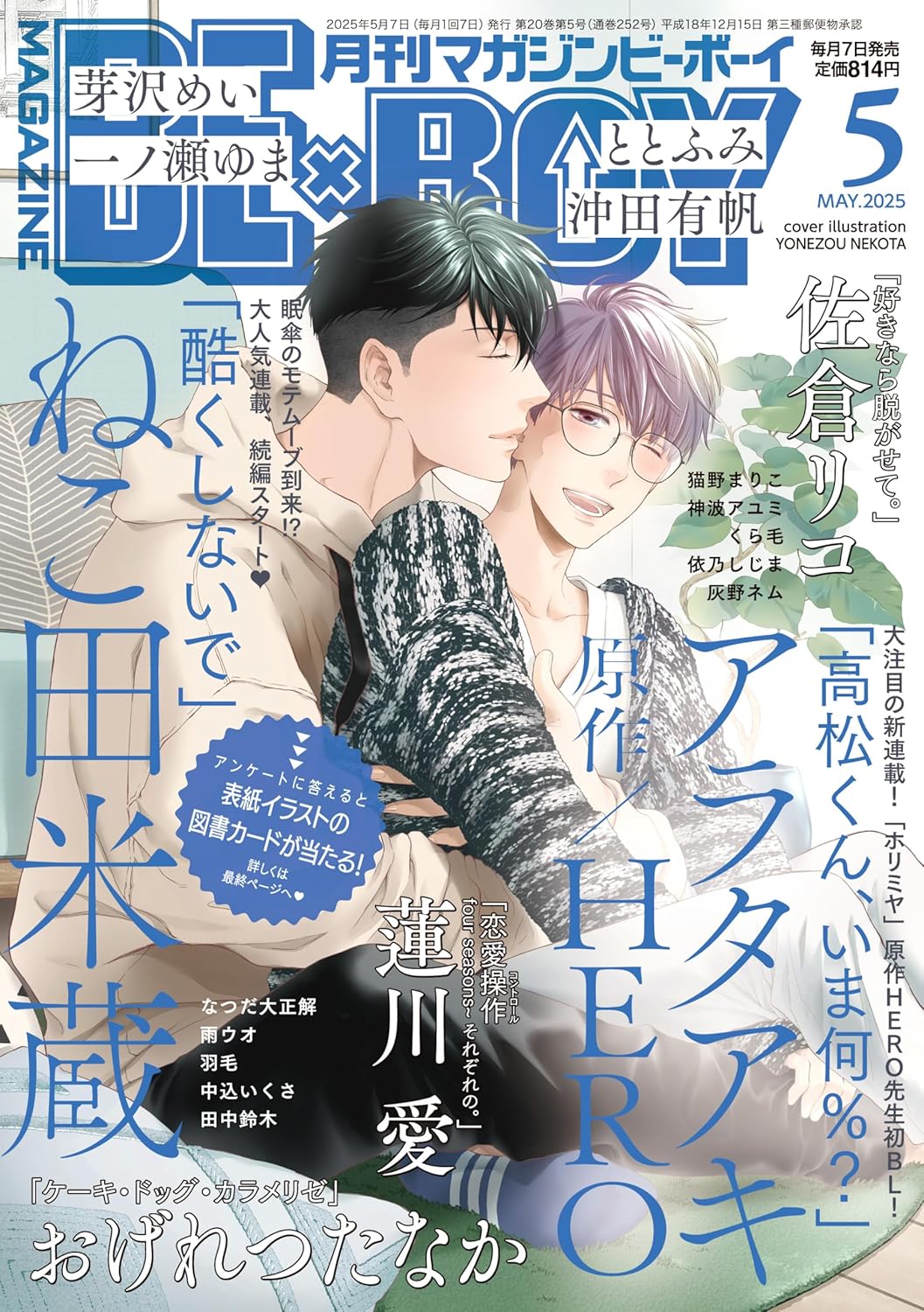 Magazine BE×BOY was first published by Seiji Biblos (Biblos) from 1993 – 2006. After the bankruptcy of Biblos, Libre was created in order to continue their publications. The first Libre issue of Magazine BE×BOY was published in June 2006.