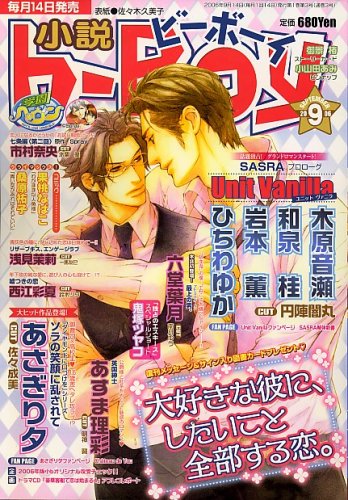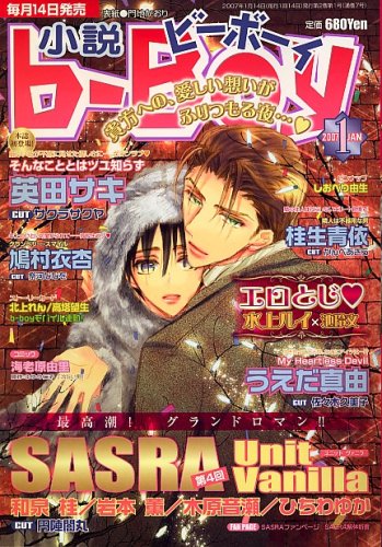 Novel b-BOY was first published by Seiji Biblos (Biblos) from 1992 – 2006. After the bankruptcy of Biblos, Libre was created in order to continue their publications. The first Libre issue of Novel b-BOY was published in June 2006. With the Autumn 2017 issue, Novel b-BOY was published as special issues of BE×BOY GOLD until its last issue in April 2022.