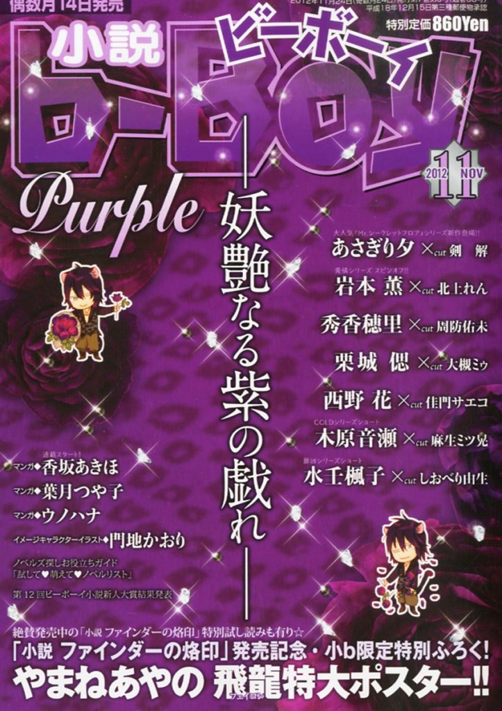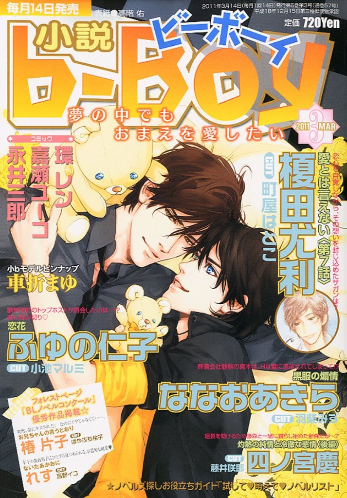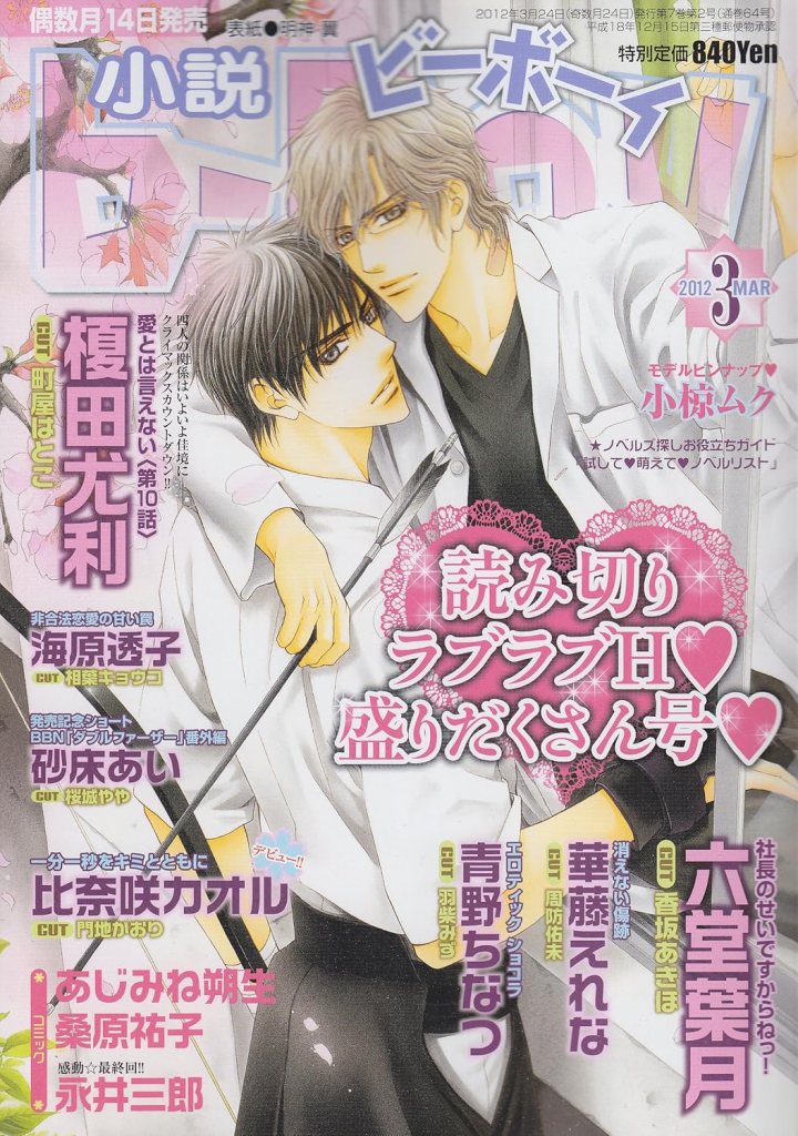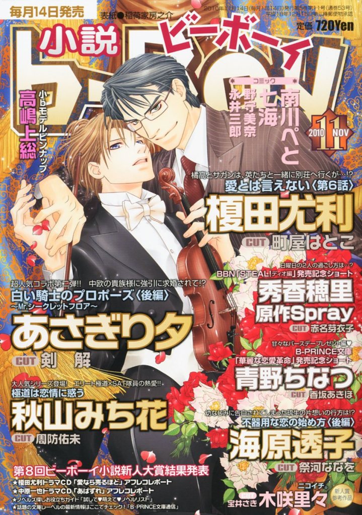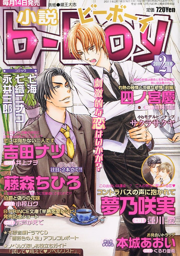 Novel b-BOY was first published by Seiji Biblos (Biblos) from 1992 – 2006. After the bankruptcy of Biblos, Libre was created in order to continue their publications. The first Libre issue of Novel b-BOY was published in June 2006. With the Autumn 2017 issue, Novel b-BOY was published as special issues of BE×BOY GOLD until its last issue in April 2022.