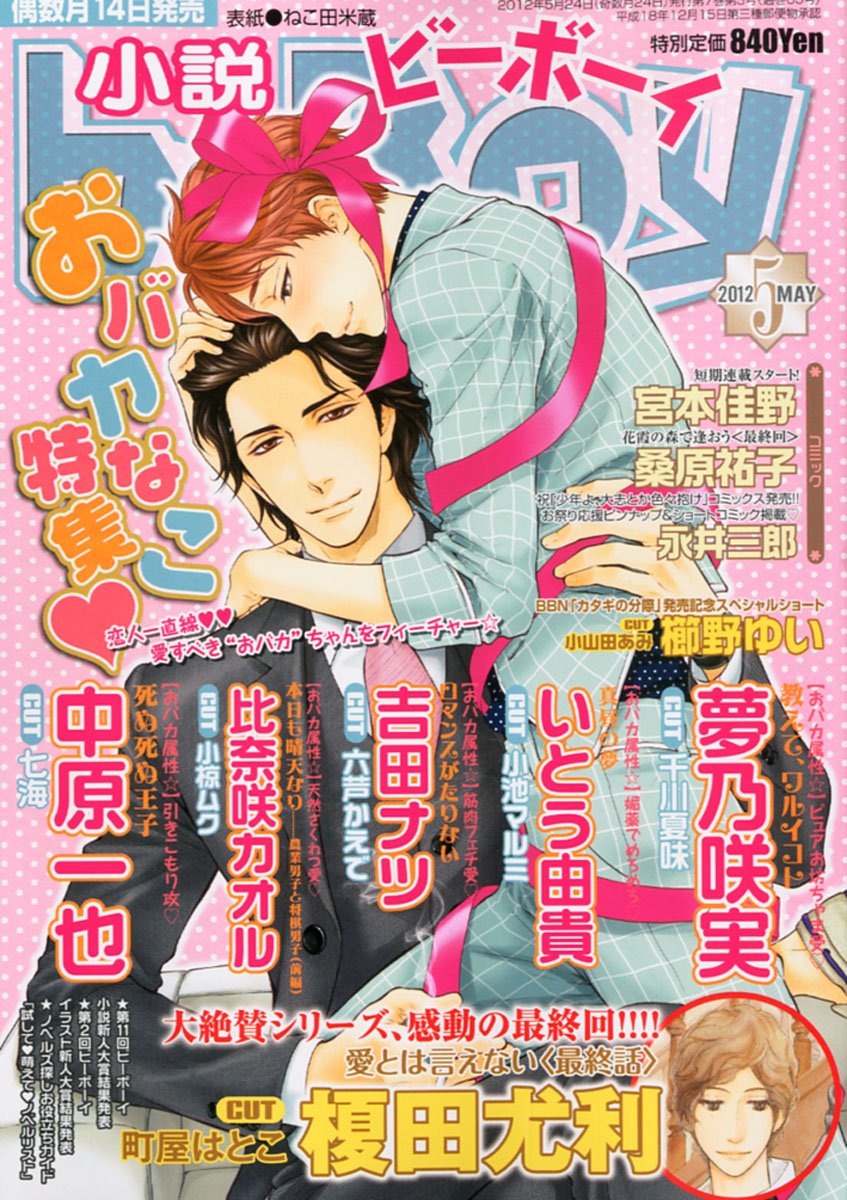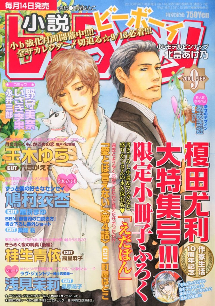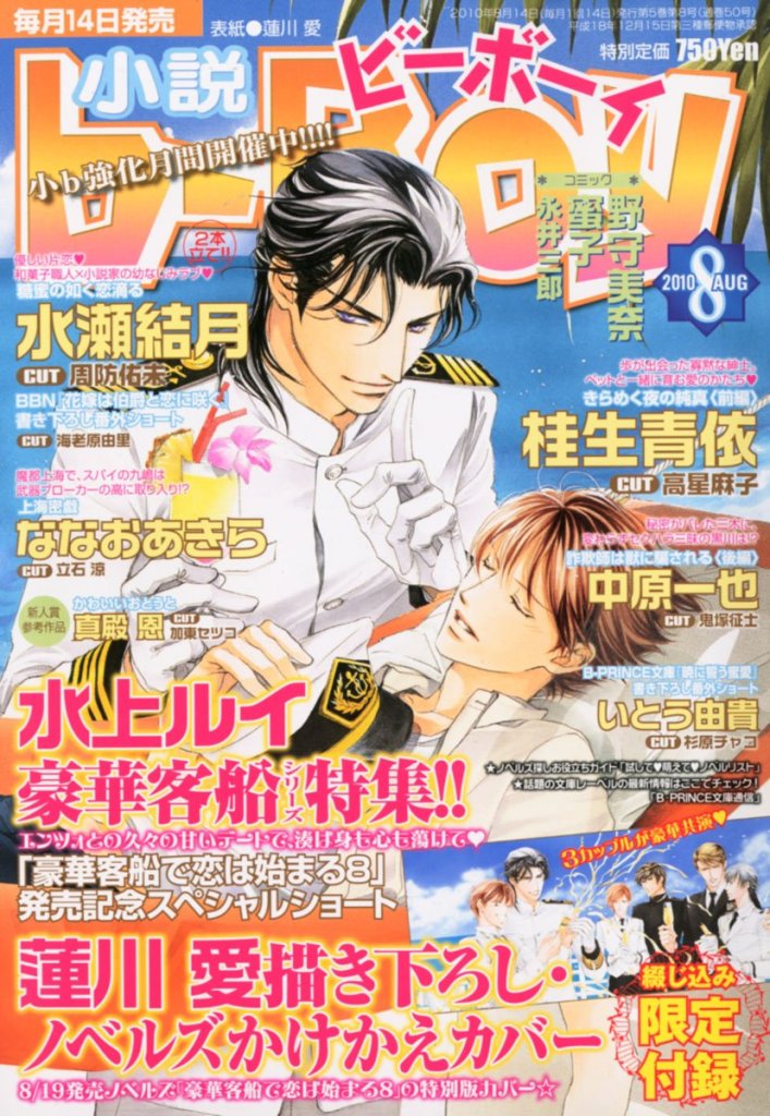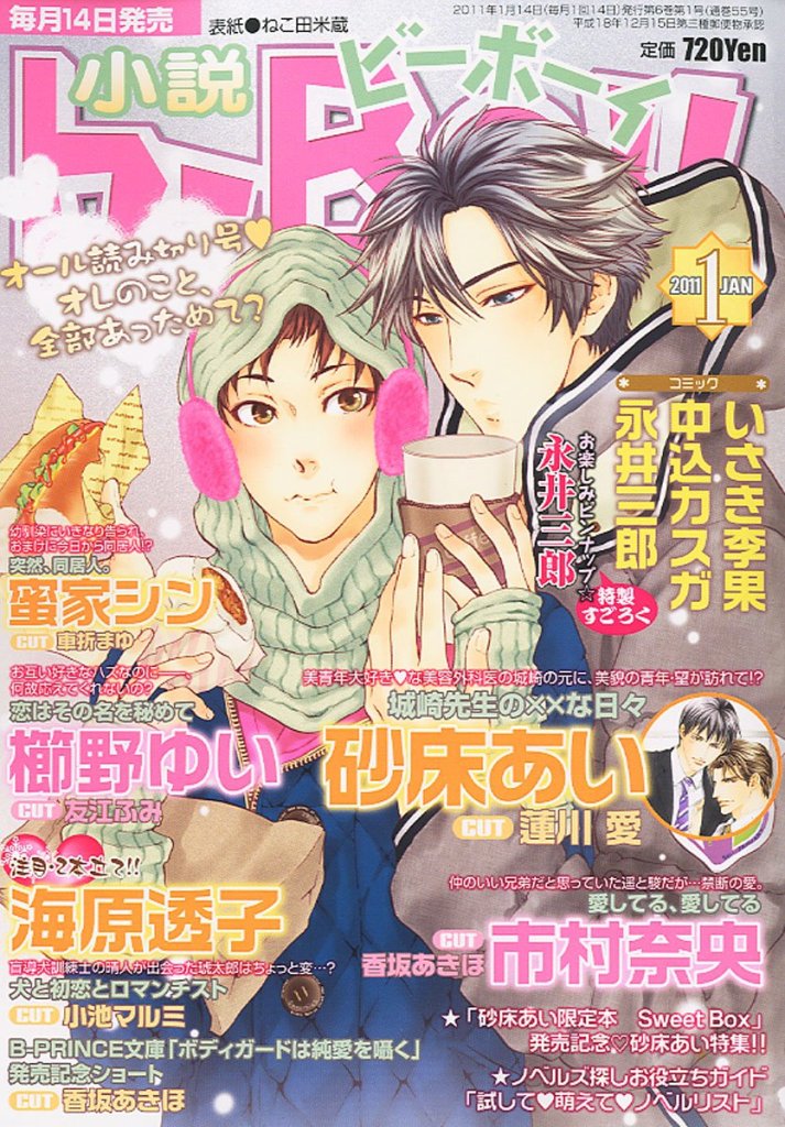 Novel b-BOY was first published by Seiji Biblos (Biblos) from 1992 – 2006. After the bankruptcy of Biblos, Libre was created in order to continue their publications. The first Libre issue of Novel b-BOY was published in June 2006. With the Autumn 2017 issue, Novel b-BOY was published as special issues of BE×BOY GOLD until its last issue in April 2022.