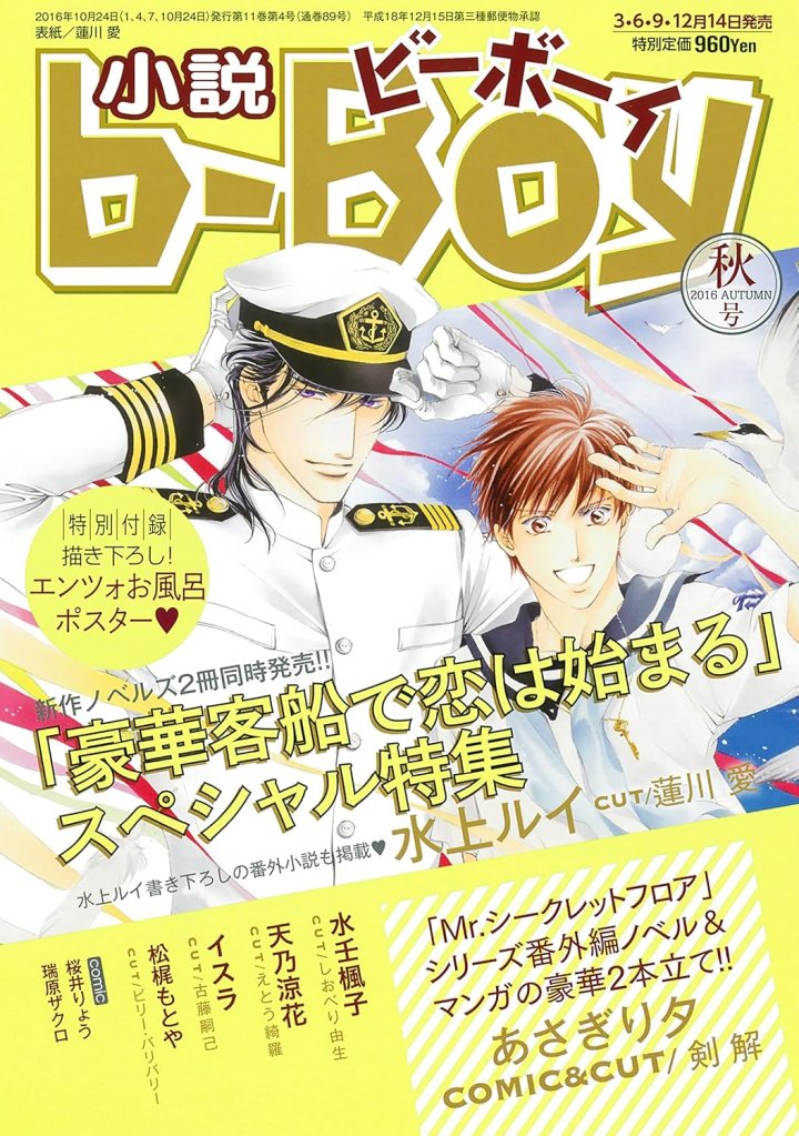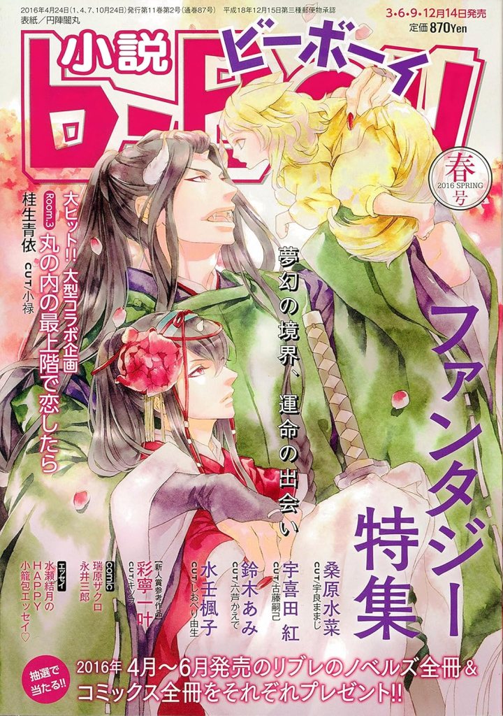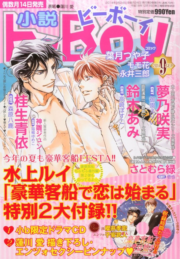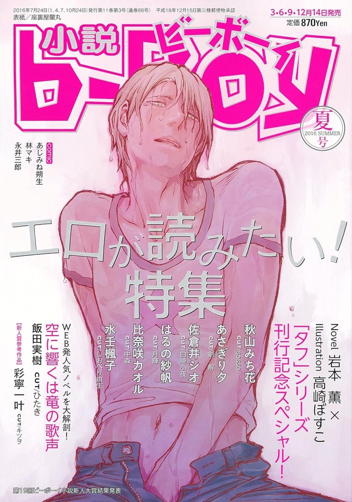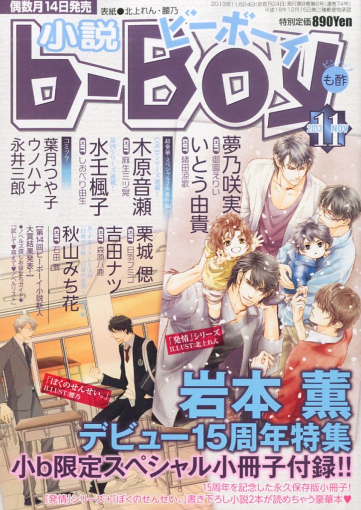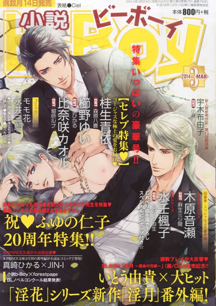 Novel b-BOY was first published by Seiji Biblos (Biblos) from 1992 – 2006. After the bankruptcy of Biblos, Libre was created in order to continue their publications. The first Libre issue of Novel b-BOY was published in June 2006. With the Autumn 2017 issue, Novel b-BOY was published as special issues of BE×BOY GOLD until its last issue in April 2022.